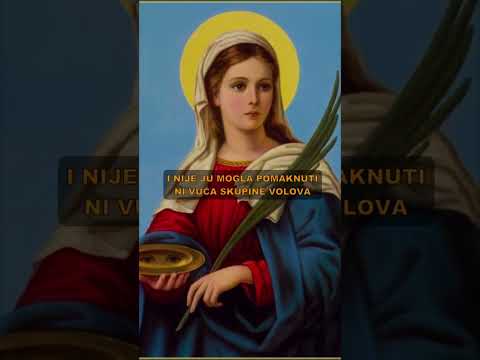 ....da je Lucija bila odvažna i na uvrede odgovarala: „Kad čisto živim, tijelo je moje stan Duha Svetoga.“ Bijesan car Dioklecijan se zgrozio i rekao da će je otpremiti u kuću bludnica da joj bude oskrvljena čistoća i onda će ju ostaviti njen Duh Sveti. Ona mu je odgovorila: „Ako mi budeš na silu oduzeo čistoću, moja duša neće biti oskvrnjena, nego ću imati na nebu dvostruku krunu.“